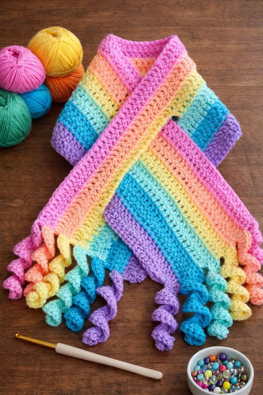 Adding a fringe or tassels to the ends of the Children’s scarf with crocheted spiral – Pattern is another popular customization. Tassels give the scarf extra movement and a finished look. Just be sure they are attached very securely, as children tend to pull on them. Using a slip stitch to reinforce the edges can also add durability.