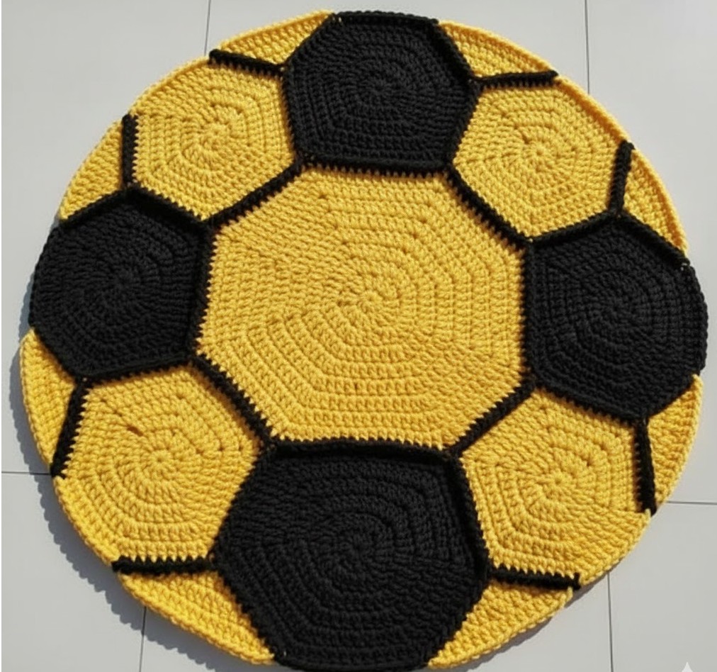 The most iconic version of a Crochet Ball Rug – Pattern mimics the truncated icosahedron design of a traditional soccer ball. This requires you to crochet 20 hexagons and 12 pentagons. Mastering these two shapes is the “heart” of the Crochet Ball Rug – Pattern, as they must fit together perfectly like a puzzle to create the final circular form.
