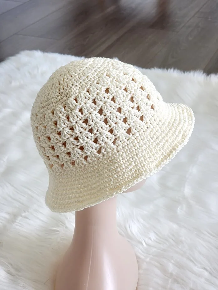 The Brim width is entirely up to your stylistic preference. In a typical Crochet Bucket Hat- Pattern, the brim is about 2 to 3 inches long. However, if you want a more dramatic “retro” look, you can continue the increase pattern for several more rows. Just keep in mind that a very wide brim may require a stiffer yarn or a smaller hook to prevent it from falling over your eyes.