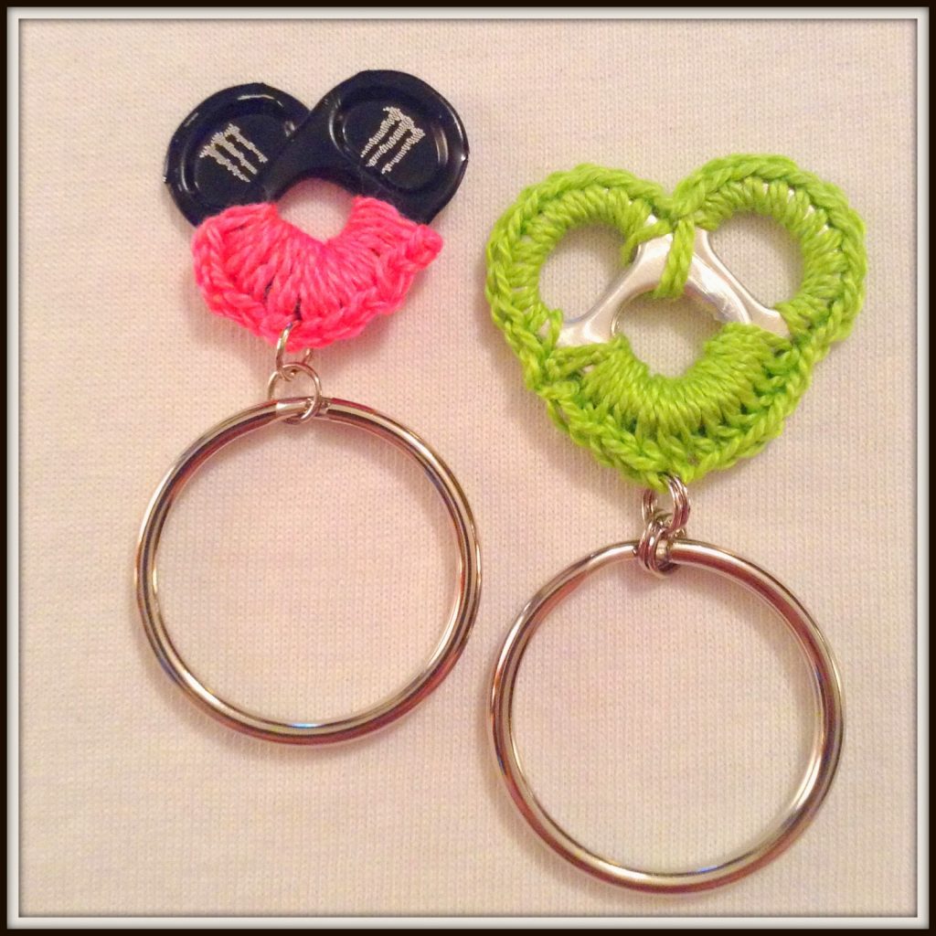 Some energy drinks and craft sodas use colored tabs (red, blue, green). You can also spray-paint your tabs before starting the Crochet Soda Tab Keychains – Pattern, but make sure the paint is fully cured and “non-chipping” before you start crocheting.