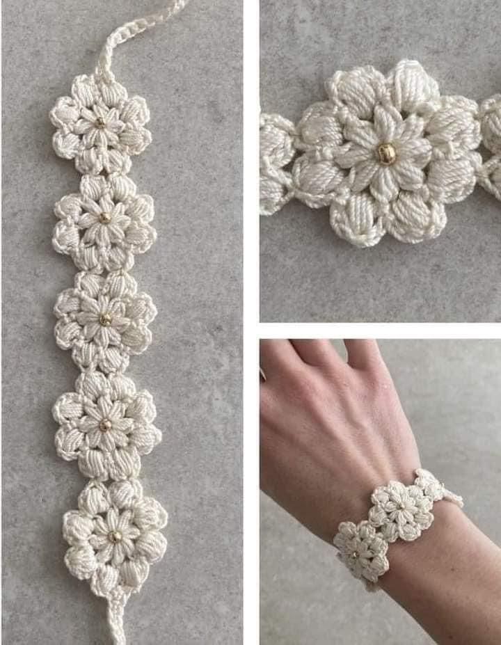The popularity of the Crocheted flower bracelet – Pattern continues to grow because it blends floral charm with wearable design. These bracelets can be minimalist or richly detailed, depending on stitch choice, yarn type, and finishing techniques. They are often used as gifts, fashion accessories, or even small handmade products for creative businesses.