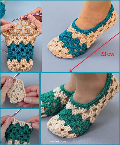 If your slippers stretch out after repeated wear, you can tighten them by adding an extra border around the opening or using elastic thread in the final row.