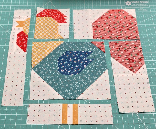 Now it’s time to build your Chicken Block – Pattern piece by piece. This block typically starts with a combination of square and rectangular fabric cuts arranged to form the chicken’s body and details.