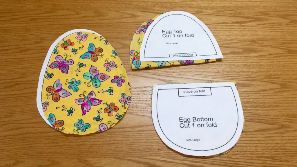Most people prefer their fabric eggs to be roughly the size of a large chicken egg (about 2.5 to 3 inches tall). However, you can easily scale the pattern up to make “giant” eggs for floor displays or down to make tiny “quail” eggs for a miniature display.