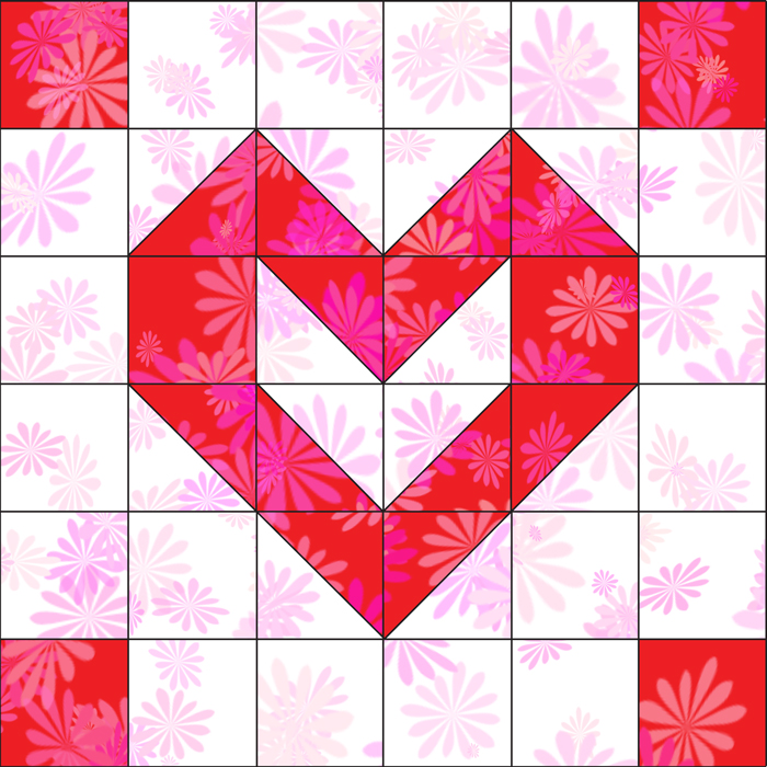 Adding borders or “sashing” between the blocks can also modify the look of the Playful Hearts Block – Pattern. Sashing—the strips of fabric between blocks—acts as a frame for each heart. If you use a contrasting color for the sashing, the Playful Hearts Block – Pattern will appear more structured and traditional. If you use the same color as the background, the hearts will appear to “float” on the surface of the quilt, enhancing the whimsical and playful theme of the design.