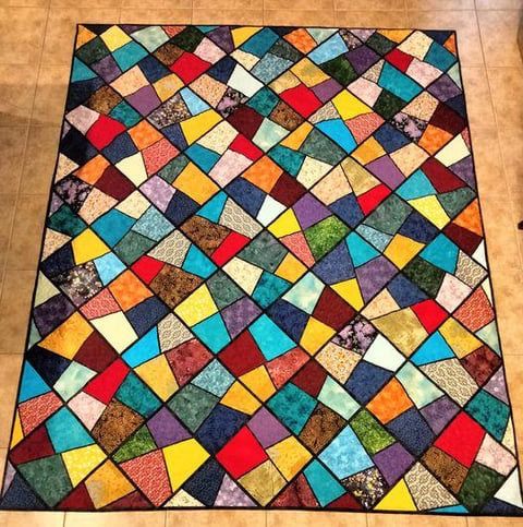 The Stained Glass Quilt – Pattern is a quilting technique designed to replicate the look of stained glass windows using fabric. It combines vibrant quilt blocks with bold black (or dark-colored) outlines, creating a dramatic effect that emphasizes both color and structure.