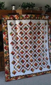 In a standard Toiletry bag with a circular zipper, in patchwork style – Pattern, squares of 2.5 inches or 3 inches work beautifully. They are small enough to show off many fabrics but large enough to be easy to handle during the sewing process.